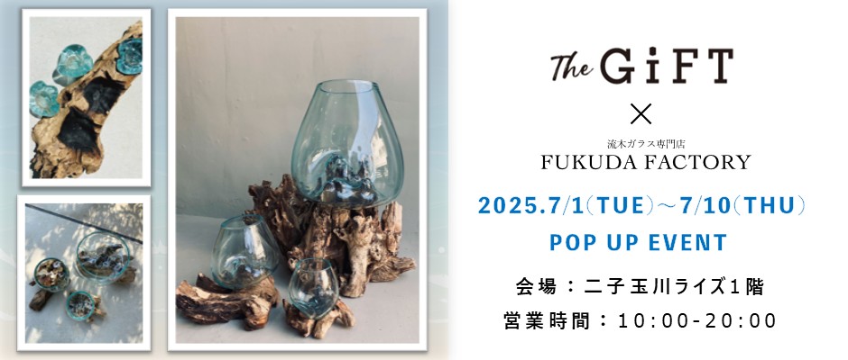 昨年も大好評頂いたPOP UP が今年もやってきました。 この夏、流木ガラス専門店 FUKUDA FACTORYが 二子玉川RISE タウンフロント1F The GiFTに期間限定でオープンします!